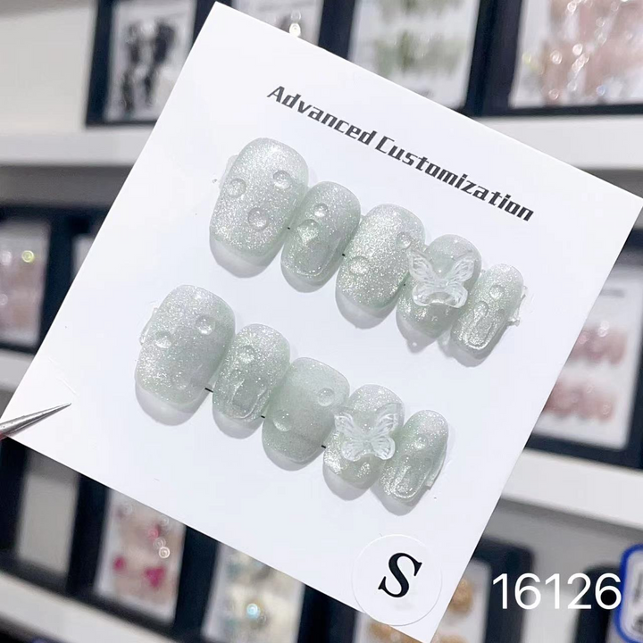16126#Green Butterfly Short Square